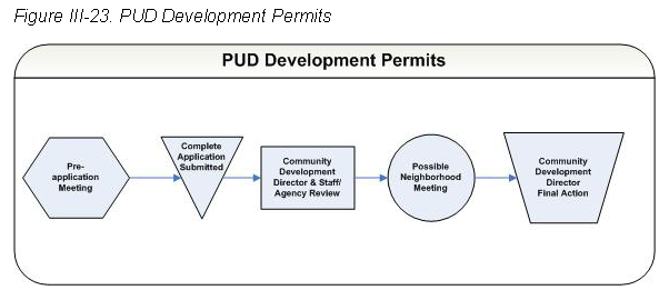 Description. A PUD development permit represents the last stage of review required prior to the issuance of building permits or other permits for improvements or land uses within a PUD zone district. The construction, modification, or alteration of any building or structure and all specific land uses within the PUD shall be governed by the PUD development permit. A PUD development permit is only issued when all details of the proposed PUD development (or a portion of that development) have been finalized and have been reviewed for consistency with the terms of the approved PUD zone document and all design and development standards in this land development code that have not been waived or modified by the terms of the approved PUD zone document.