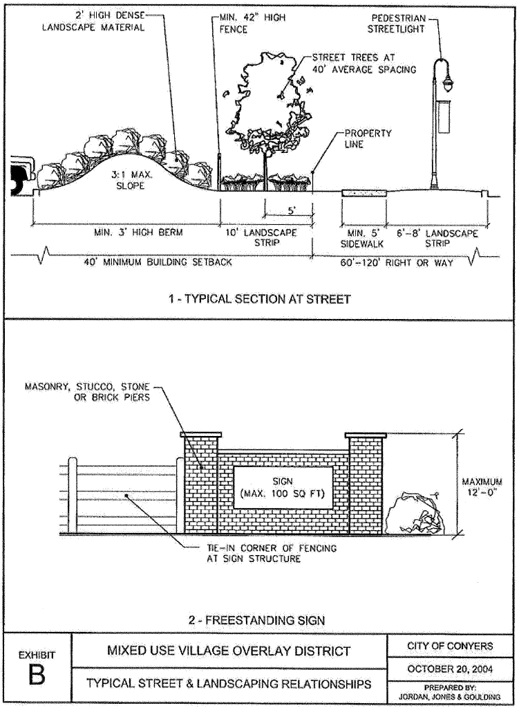 *Buffer widths may be reduced by 20 feet by the addition of a solid, opaque fence or wall at least six feet in height.