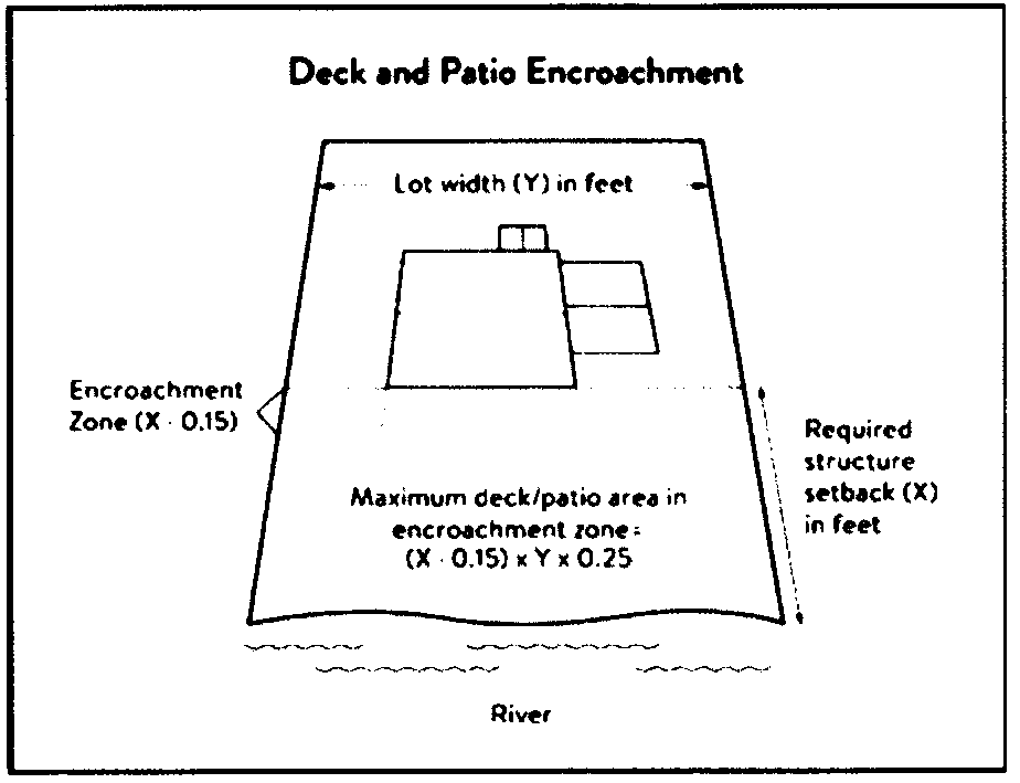 Private facilities. Private roads, driveways, and parking areas, private water access and viewing facilities, decks and patios in setback areas, and private signs.