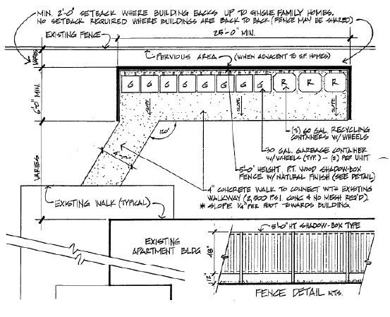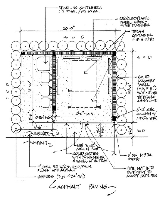 For purposes of clarification, displayed below is a sample of an acceptable design for dumpster and recycling container enclosures: