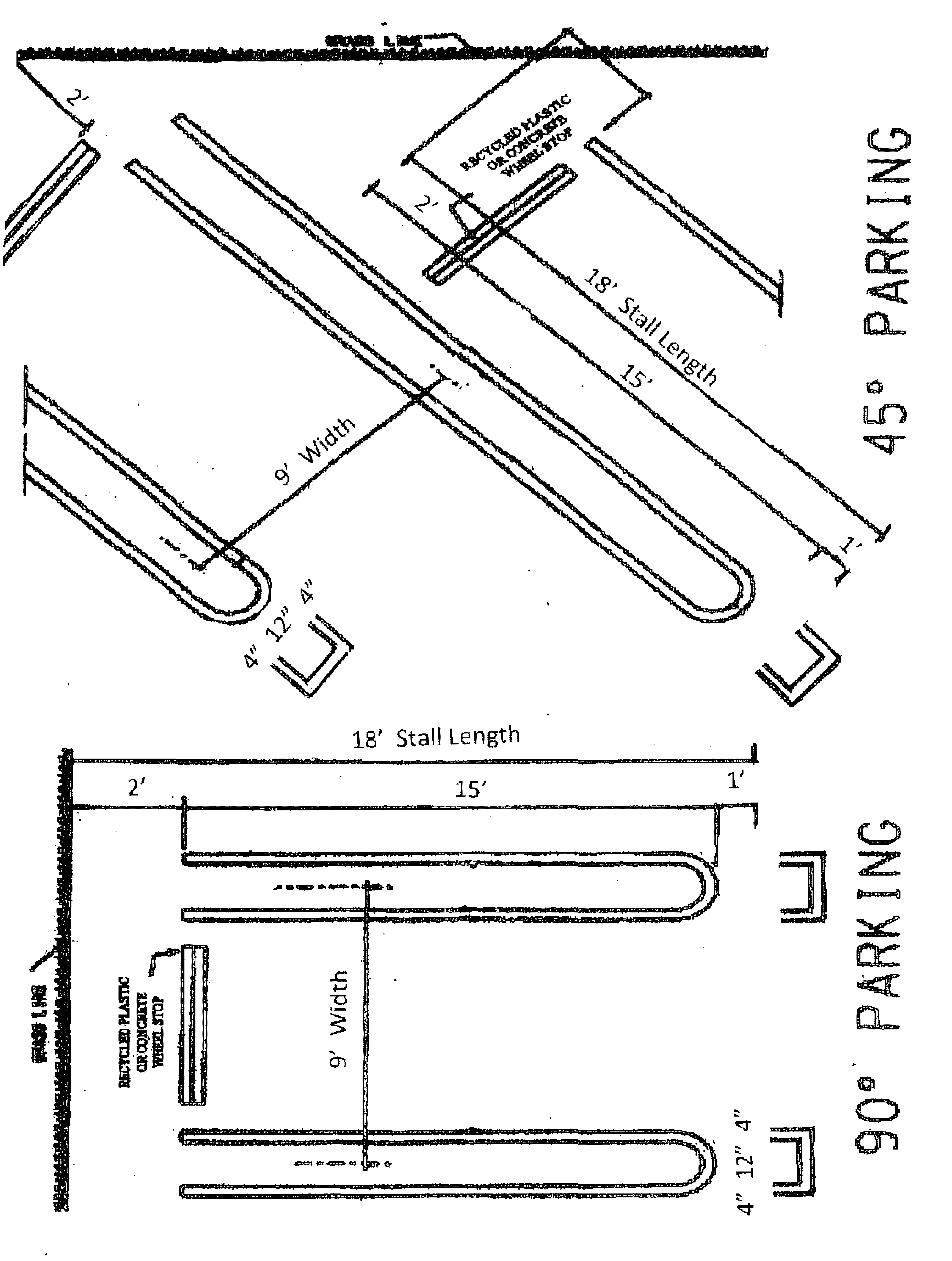 Layout. All parking spaces shall be designed, striped and provided with concrete or recycled plastic wheel stops in accordance with figure 25-1.