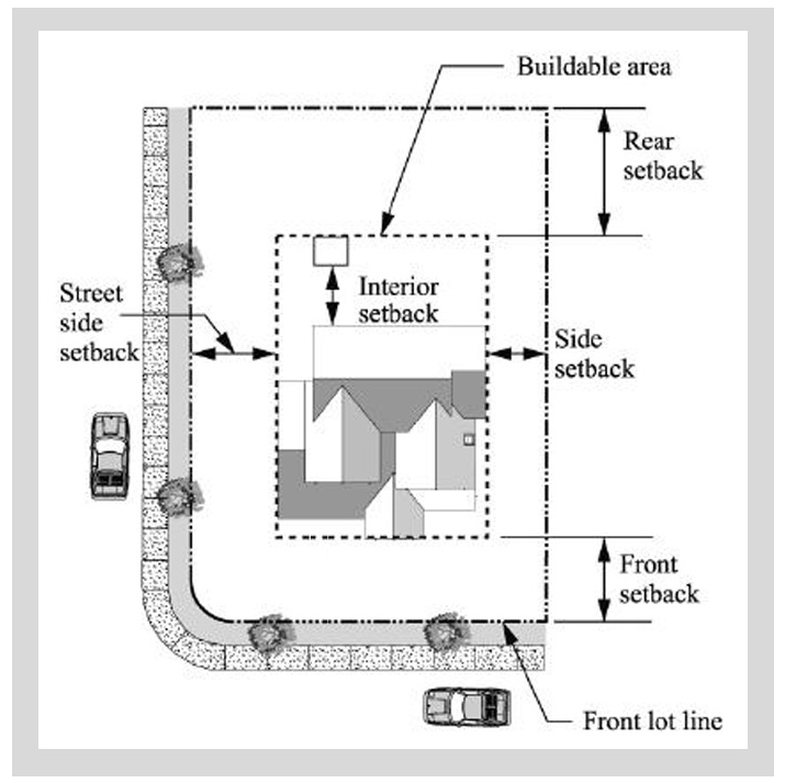 Secondary front: On a corner lot, the secondary front yard faces the lot's secondary street. The secondary front yard includes the area from the lot line abutting the secondary street to the face of the building and from the front line of the building (boundary of the front yard) to the rear lot line. The street in which the structure is addressed shall be deemed the front yard.