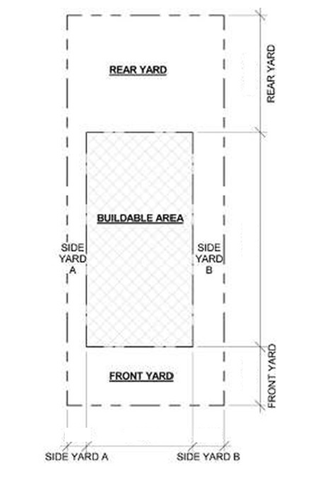 Side: The open unoccupied area between a main building and the side lot lines, extending from the front yard area to the rear yard area. The width of the side yard shall be measured horizontally from and at right angles to the nearest point of the side lot line.