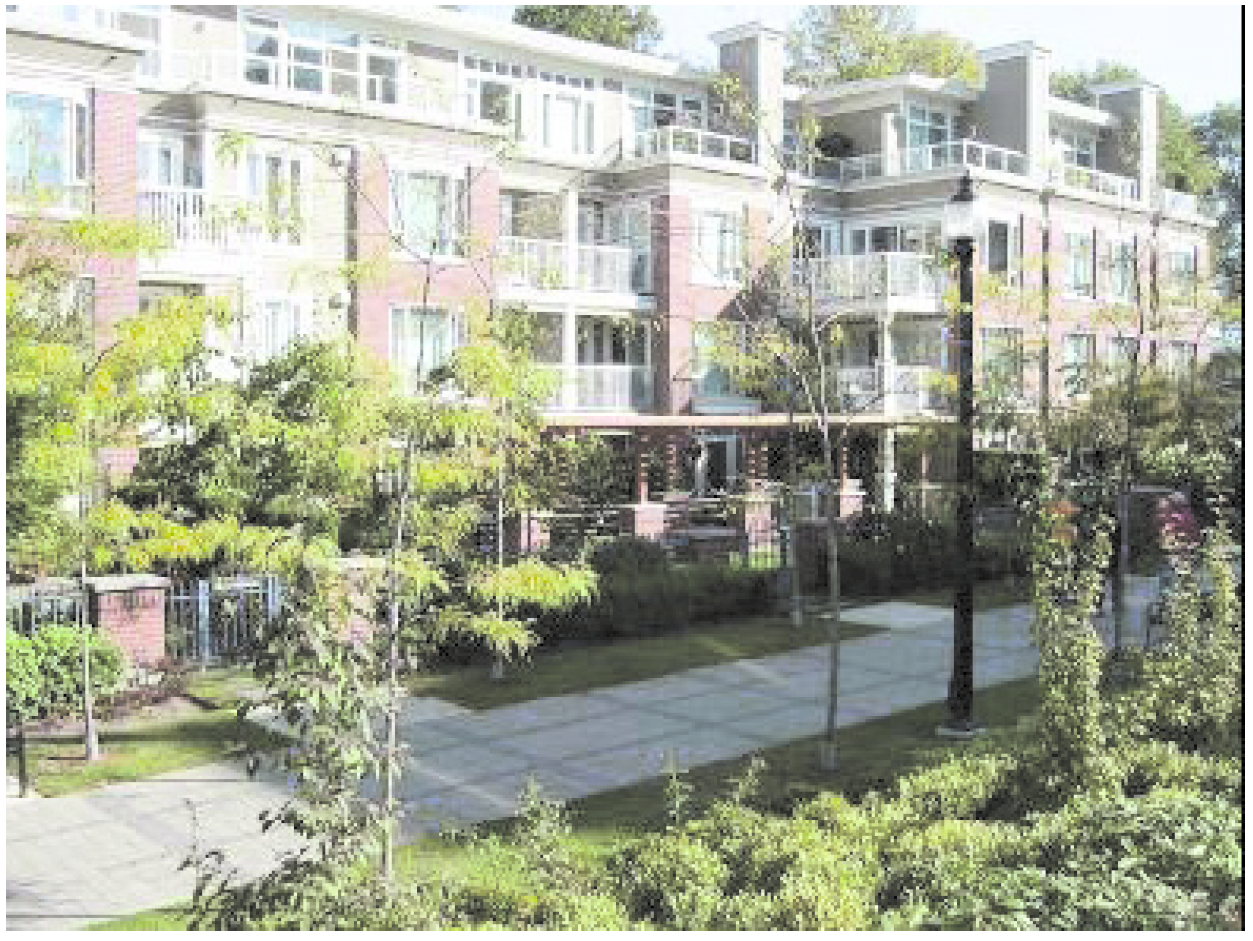 The minimum setback can be achieved through a combination of common open space/landscaping and/or building setbacks.