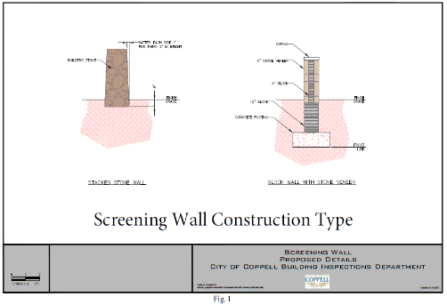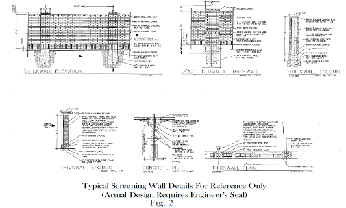 All construction wall plans and evaluations shall be sealed by an engineer, licensed under Texas law, prior to issuance of a building permit. Trees shall be planted in the landscape strip between the curb and screening wall according to the standards set forth in article 34 for residential and multi-family lots.