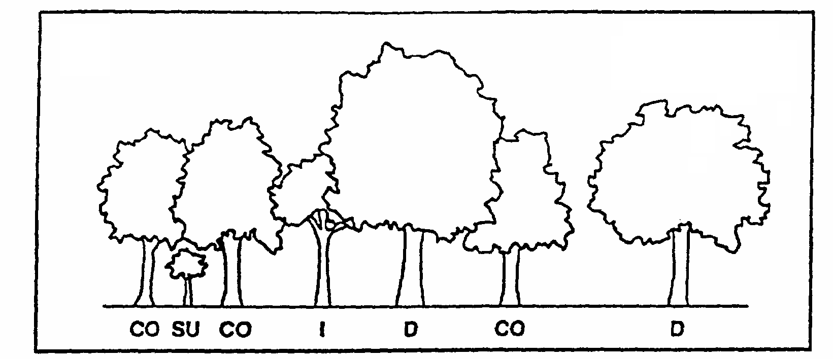 usually as dominant (D), codominant (CO), intermediate (I) and suppressed (S).