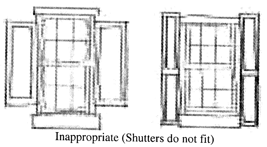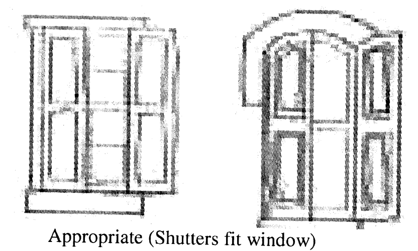 Shutters. Shutters shall be of louvered wood construction, and shall fit the window opening (so that if closed, they would cover the window opening).