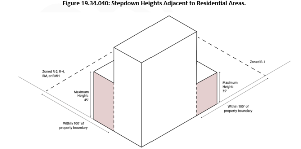 Exceptions to the building heights specified in Table 19.34.040 apply, in accordance with Subsection 19.46.130.K.
