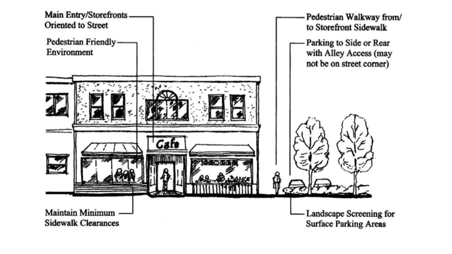 Figure 17.55.100(D)(1) Commercial and Mixed Use Building Orientation