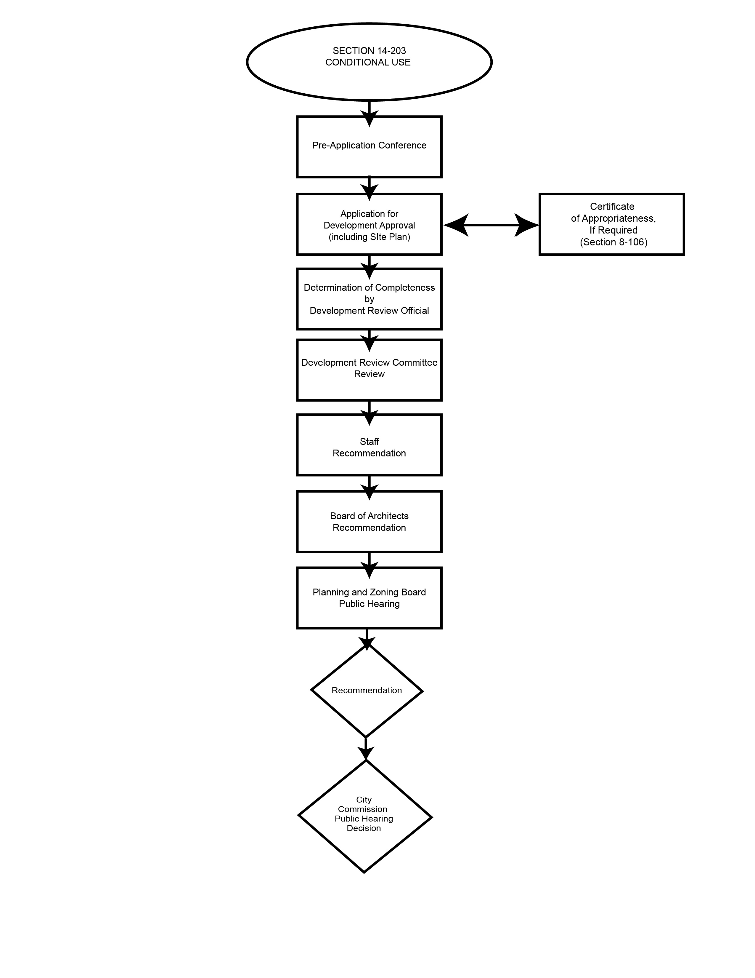 The Planning and Zoning Board shall review the application for conditional use approval, consider the recommendations of staff and the Board of Architects, conduct a quasi-judicial public hearing on the application and recommend to the City Commission whether they should grant the approval, grant the approval subject to specified conditions or deny the application. The Planning and Zoning Board may recommend such conditions to the approval that are necessary to ensure compliance with the standards set out in Section 14-203.8.