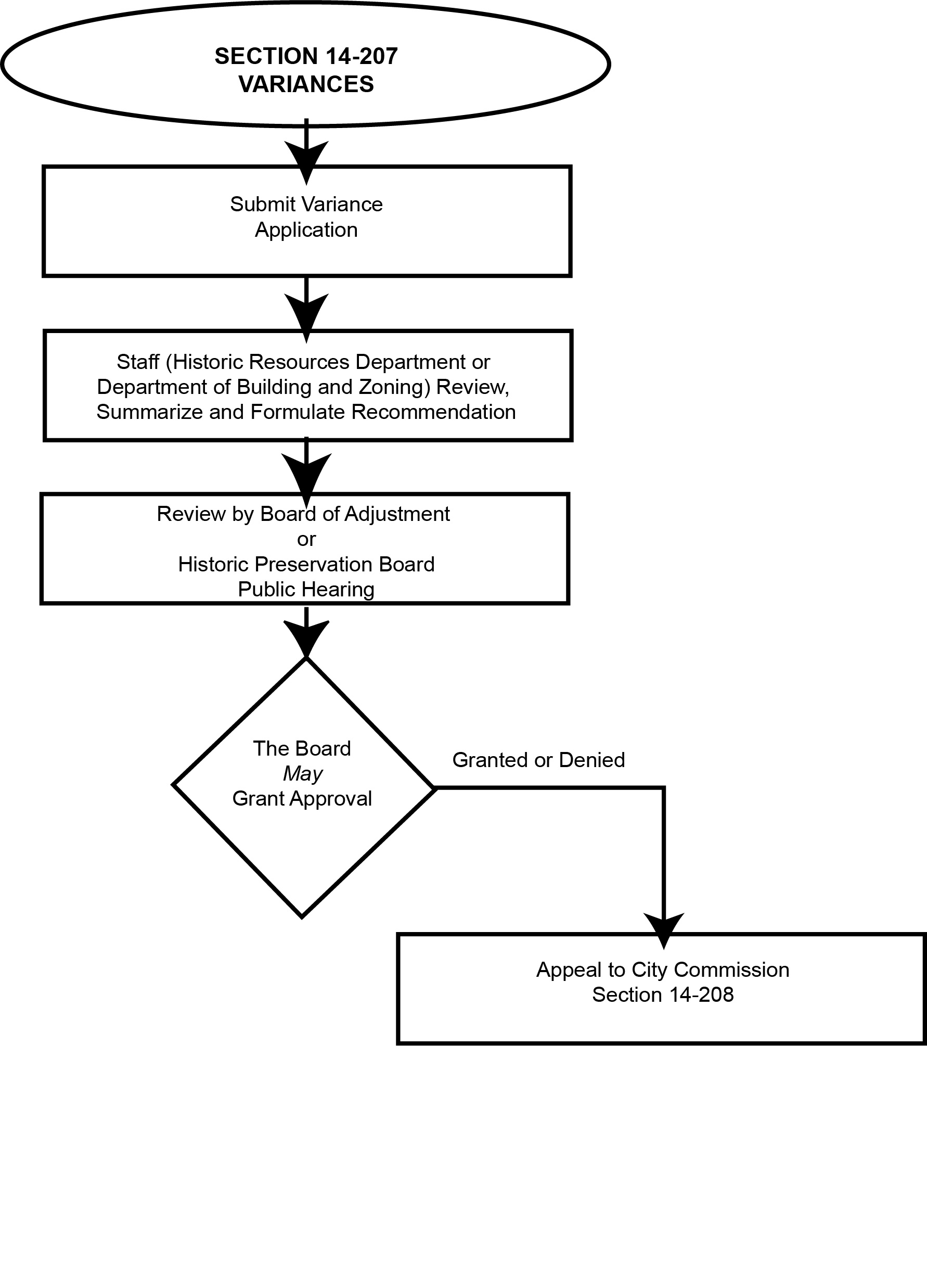 | Appeals (from decisions by the Board of Adjustment, Board of Architects and the Historic Preservation Board) | Section 14-208 |