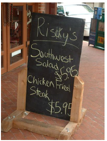 A-frame signs are allowed on private property or within public rights-of-ways. Signs shall not impede pedestrian, ADA or vehicular access.