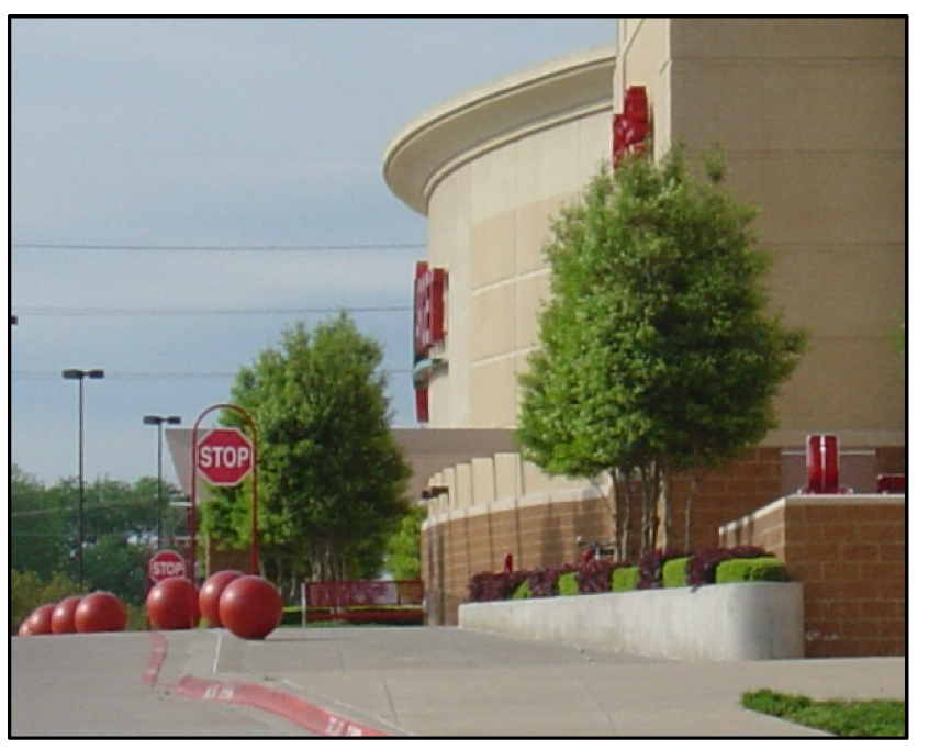 These tree plantings should be placed so as not to impede sign visibility or pedestrian safety.