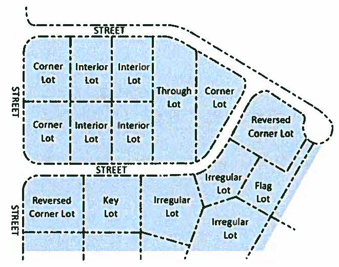 Measured along a straight line down from the midpoint of the front property line of the lot to the midpoint of the rear property line. The city manager or designee shall determine lot depth for parcels of irregular configuration. Figure 17.2 below illustrates the method used to determine lot depth.