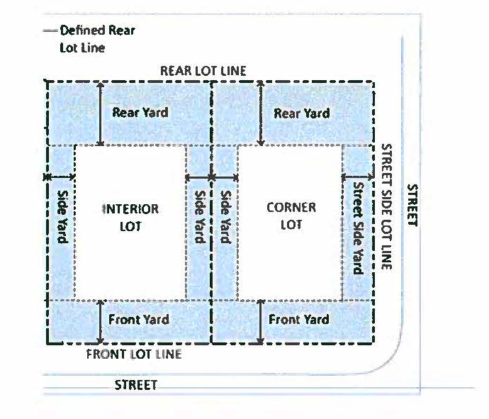 A yard on a corner lot or reversed corner lot extending from the front yard to the rear lot line between the building setback line and the nearest side street lot line.