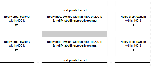 Re-zoning Defined - Notices under this policy are required only if the legislation will require a change to the development zone of the property affected or if the legislation limits or prohibits land uses previously allowed in the affected zone. In cases where zoning standards are changed, such as setback changes, landscaping requirements, etc., a determination shall be made regarding whether the change would limit or prohibit land uses previously allowed. In cases where a previously allowed use would be limited or prohibited, notice is required.