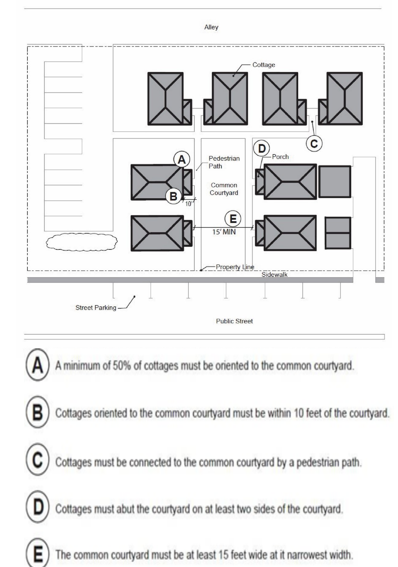 15-feet wide public access easement over the length of the sidewalk and connecting to public street rights of way at each end. The required public access easement may be located in a Tract under common ownership or on private development lots.