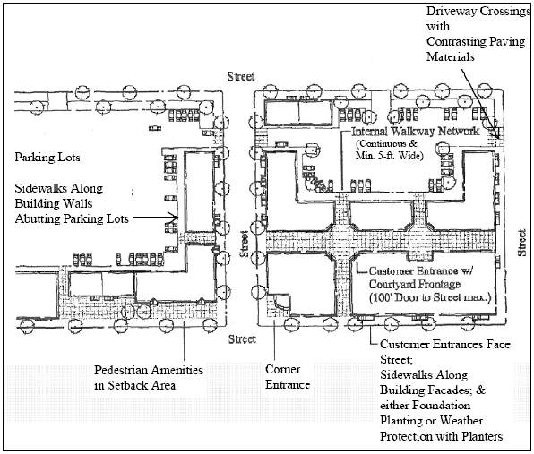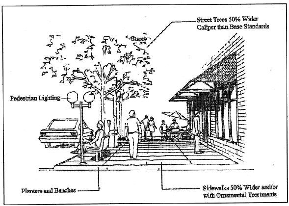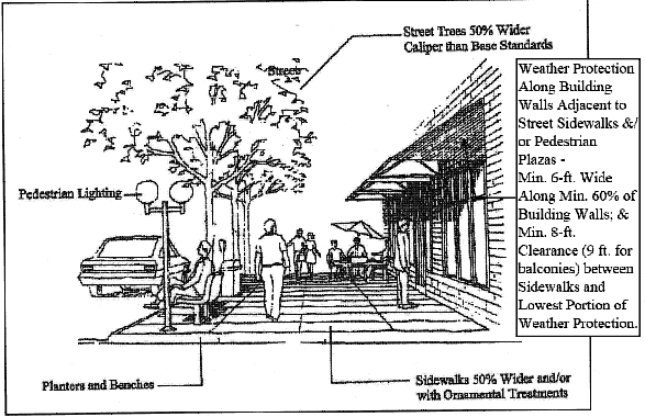 Pedestrian facilities as required in Chapter 4.10 - Pedestrian Oriented Design Standards.