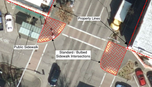To provide for orderly development of an effective pedestrian network, pedestrian facilities installed concurrently with development of a site must be extended to and through the site to the edge of adjacent property(ies).