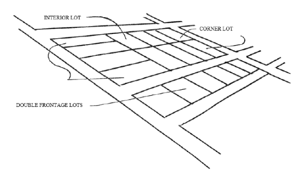 Vision clearance area: A triangular area on a lot or parcel of land at the intersection of two streets or a railroad, two sides of which are lot lines measured from the corner intersection of the lot lines for a distance specified in these regulations. The third side of the triangle is a line across the corner of the lot or parcel of land joining the ends of the other two sides; where the lot lines at intersections have rounded corners, the lot line will be extended in a straight line to a point of intersection. The vision clearance area contains no planting, earth banks, terraces, walls, structures or temporary or permanent obstructions which shall exceed three and one-half feet in height, measured from the crown of the street at its centerline.