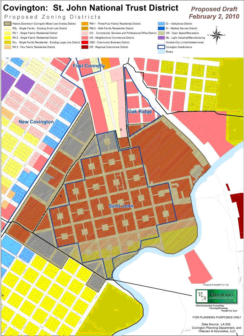 3.401. All land within the corporate limits of the City of Covington is hereby divided into the following five base zoning districts, and portions of land within the corporate limits of the City of Covington which are included in the following overlay districts: