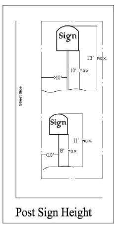 Height of post signs. The height of post signs shall not be greater than the following: