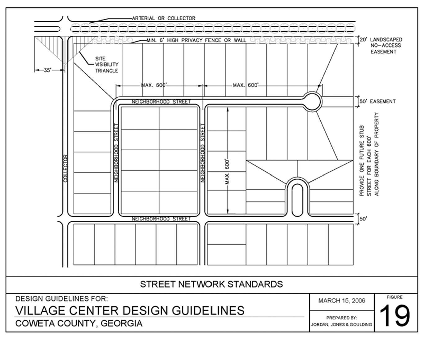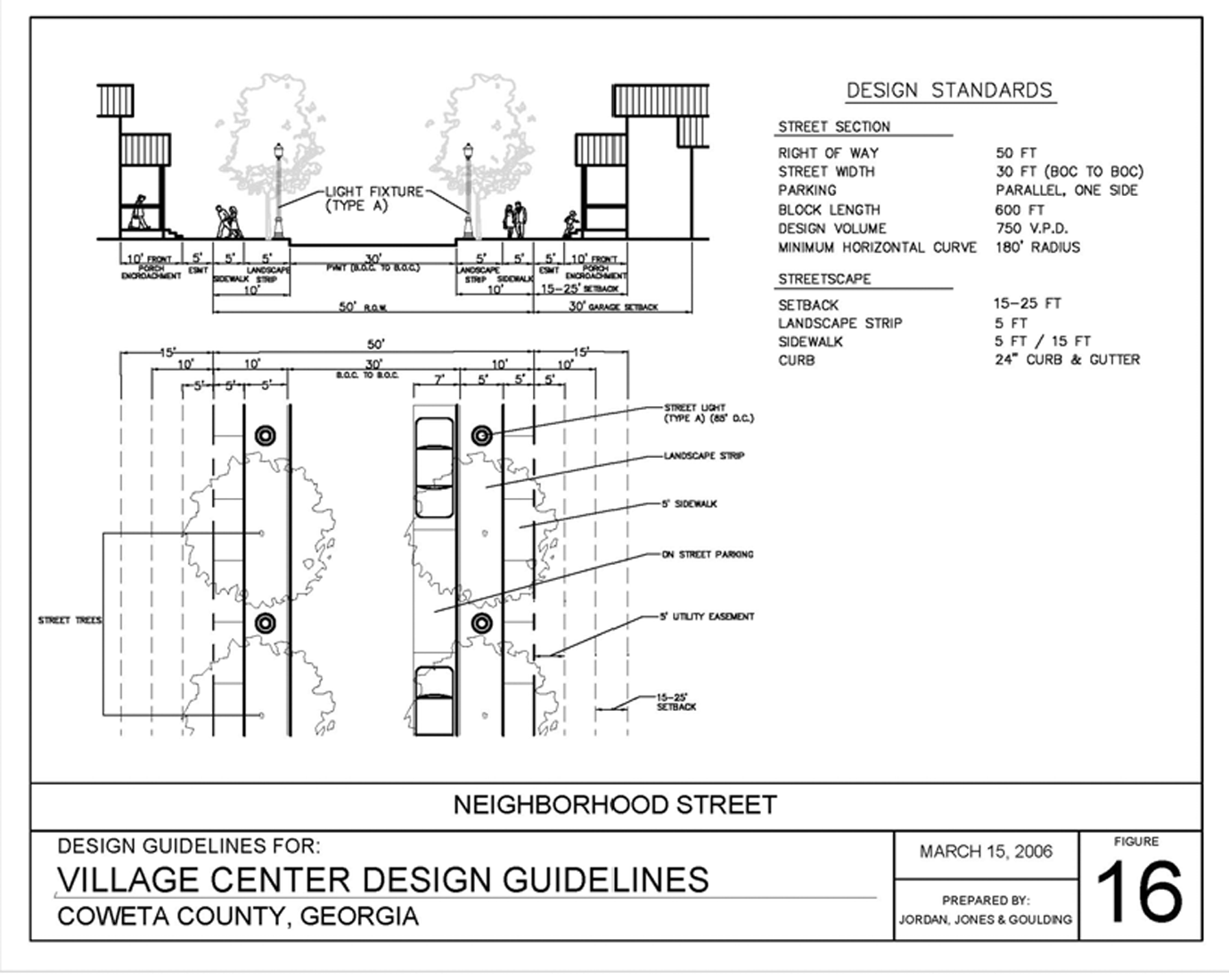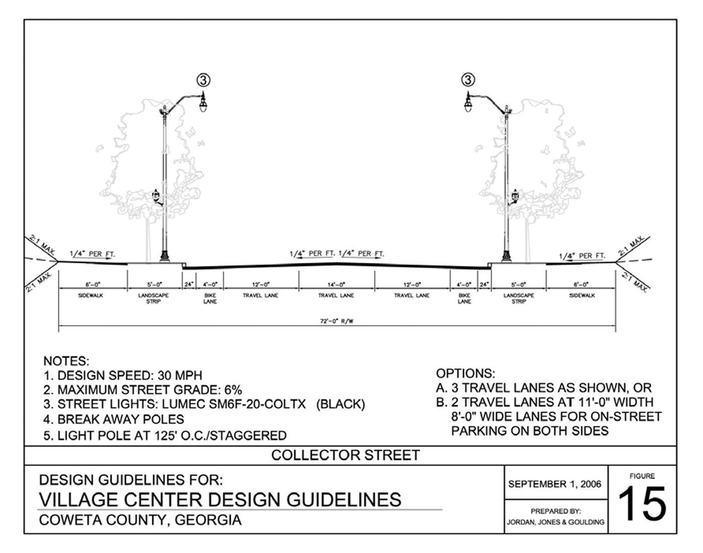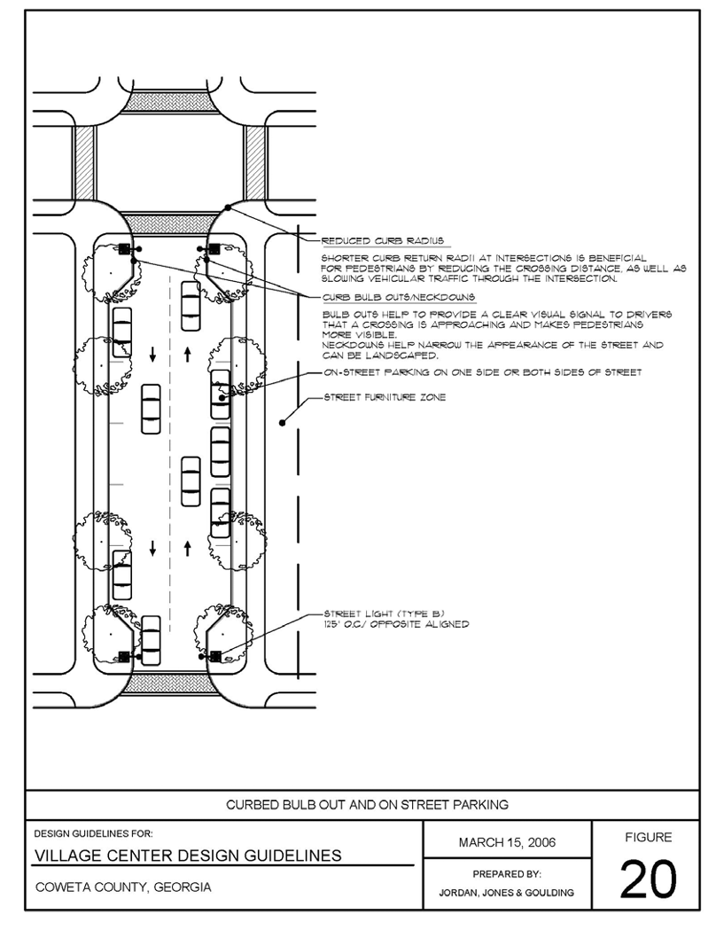 Collector: Collector streets channel local traffic into the major/minor collector and arterials system. Collectors provide land access and traffic circulation within residential neighborhoods, commercial, and industrial areas. Coweta County streets/roads are classified as major collectors or minor collectors by the Coweta County Thoroughfare Map. A collector is a street constructed in accordance with figure 15 of the village center design guidelines and serves as a collector street by virtue of its function of connecting local or neighborhood streets to other collector or arterial streets.