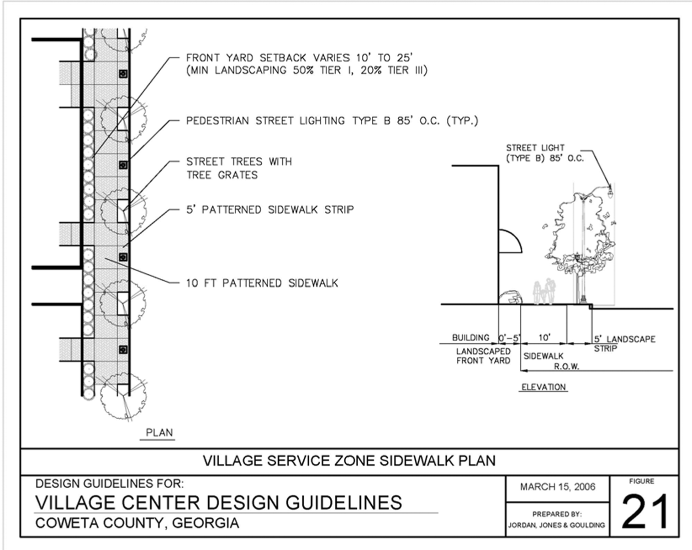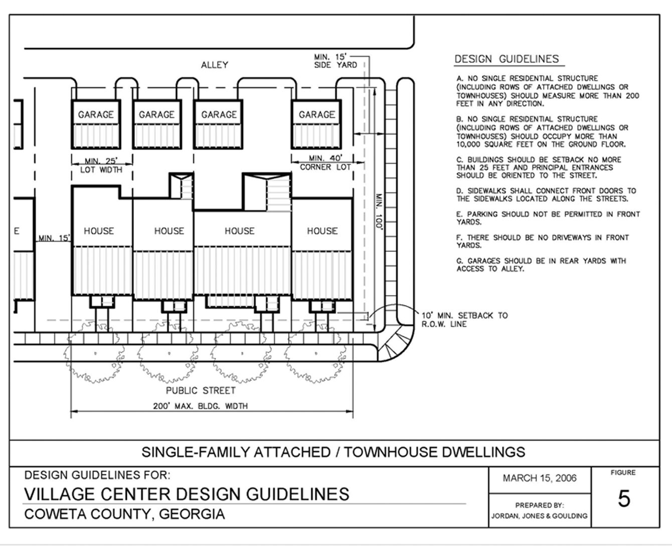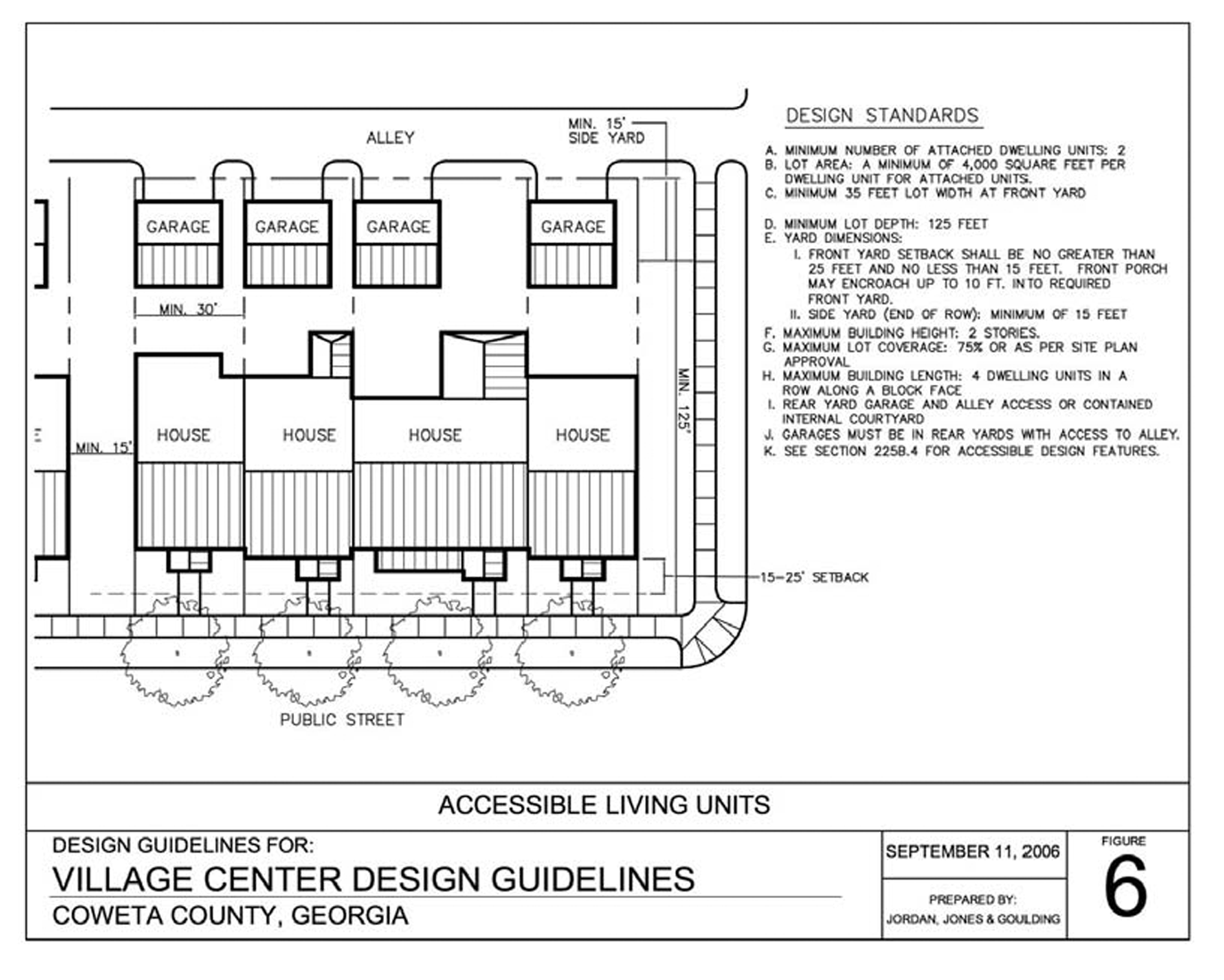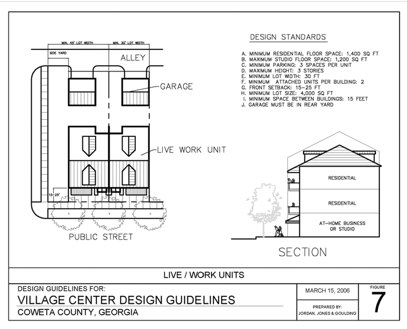 The community development department shall review construction plans prepared pursuant to article 24, section 244.4, with respect to their consistency with the development regulations, the applicable village center master plan, the village center design guidelines, and the preliminary plat and the conformity of the construction plans with each of the standards and requirements of this section and all other applicable sections of the Coweta County Code of Ordinances.