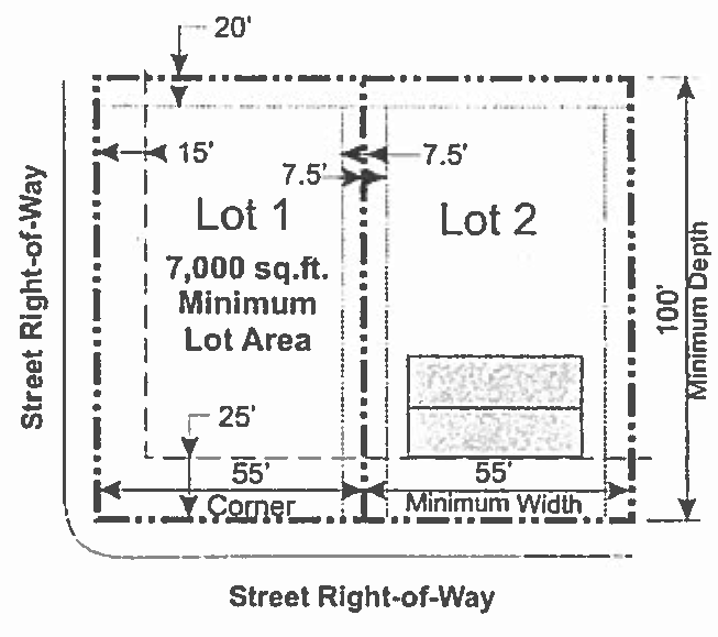 Density, area, yard, height, and lot coverage requirements. The requirements regulating the maximum permissible residential density, minimum lot size, minimum yard sizes, maximum building height, and maximum percent of lot coverage by buildings, as pertains to the R7 district, shall conform with the provisions provided in the area requirements for the R7 zoning district table.