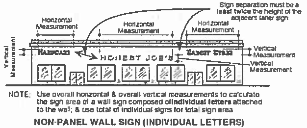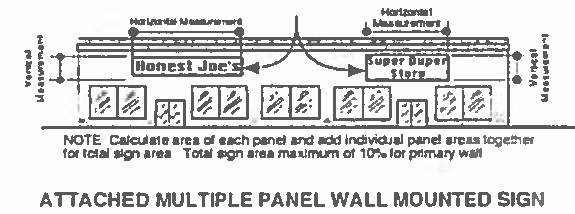 Measurement of attached signs. The sign area for an attached on-premises sign shall be the area included within the vertical and horizontal line projection of any logo, letters, or other symbols intended to be read together, composed of the total area of the message.