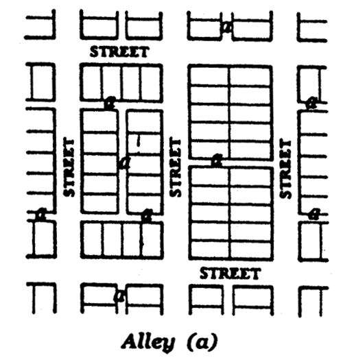 Alley means a public or private way primarily designed to serve as a secondary means of access to those parcels whose principal frontage is on a public street.