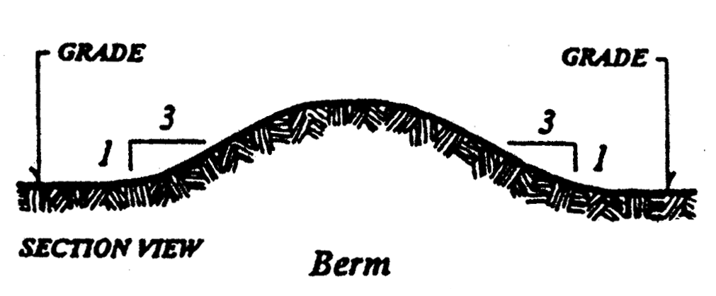 Berm means soil of good quality, uncompacted, raised generally above the surrounding finish grade with side slopes generally no steeper than three horizontal units to one vertical unit; it generally is a manmade slope.