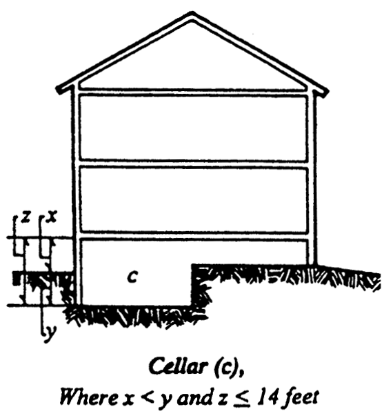 Cellar means a space within a building with less than one-half of its floor-to-ceiling height above the average finished grade of the adjoining ground or with a floor-to-ceiling height of less than 6.5 feet.