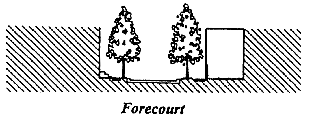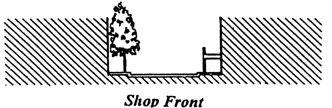 Dooryard means a building frontage type where the building facade is set back from the frontage line and the space between the frontage line and the building facade is elevated.