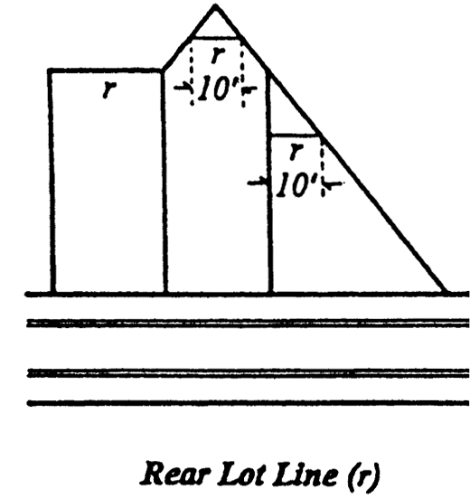 Yard, rear, means a yard extending along the full length of a rear lot line and back to a line drawn parallel to the rear lot line at a distance therefrom equal to the required rear yard depth, but excluding any area encompassed within a required corner side yard.