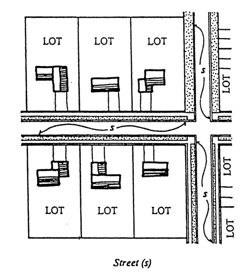 Street orientation means the direction of the architectural front facade of a building in relation to the street.