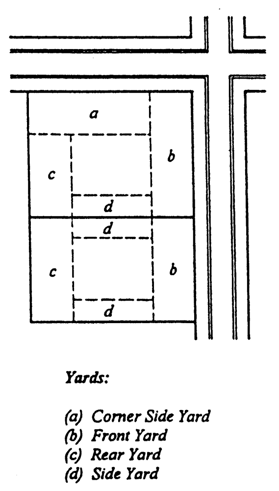 Yard, corner side, means a yard extending the full length of a corner side lot line and back to a line drawn parallel to the corner side lot line at a distance equal to the required corner side yard depth.