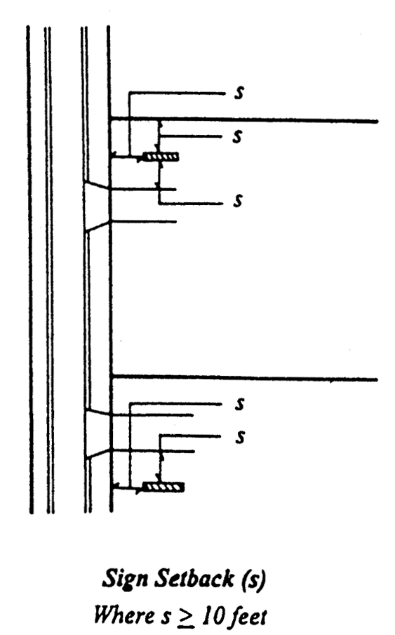 Setbacks. No advertising sign shall be located closer than ten feet to any right-of-way line or closer than 75 feet to any side property line.