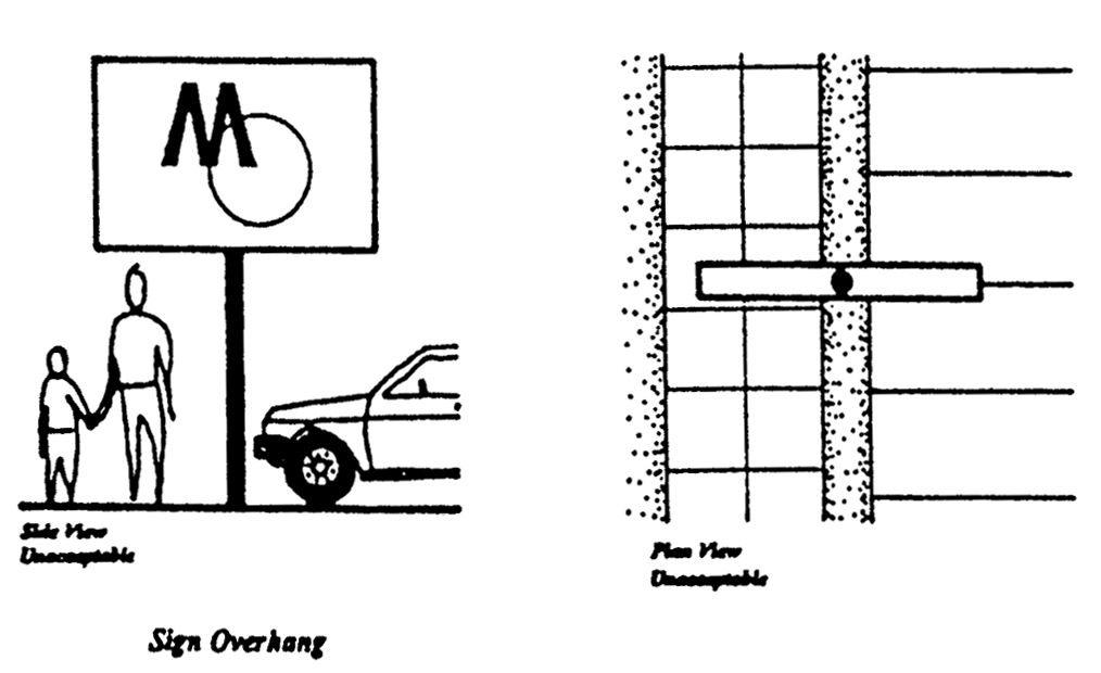 No marquee shall project within two feet of the curb of any street or driveway.