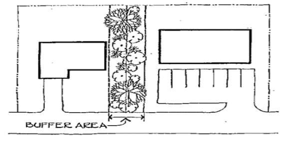 BUFFER AREA. A landscaped area intended to separate and partially obstruct the view of two adjacent land uses or properties from one another.