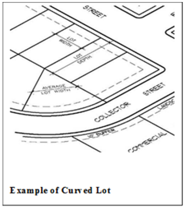 LOT, CURVED. A lot fronting on the outside curve of the right-of-way of a curved street, which street has centerline radius of 300 feet or less.