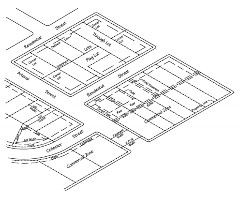 LOT LINE, FRONT. The property line abutting a street, and where no public street exists, it shall be where line abuts to a public or private way as designated.