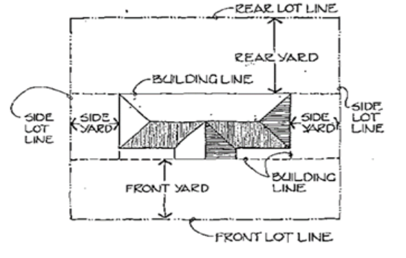 YARD, REAR. A yard across the full width of the lot between the back line of the main building and the back line of the lot.