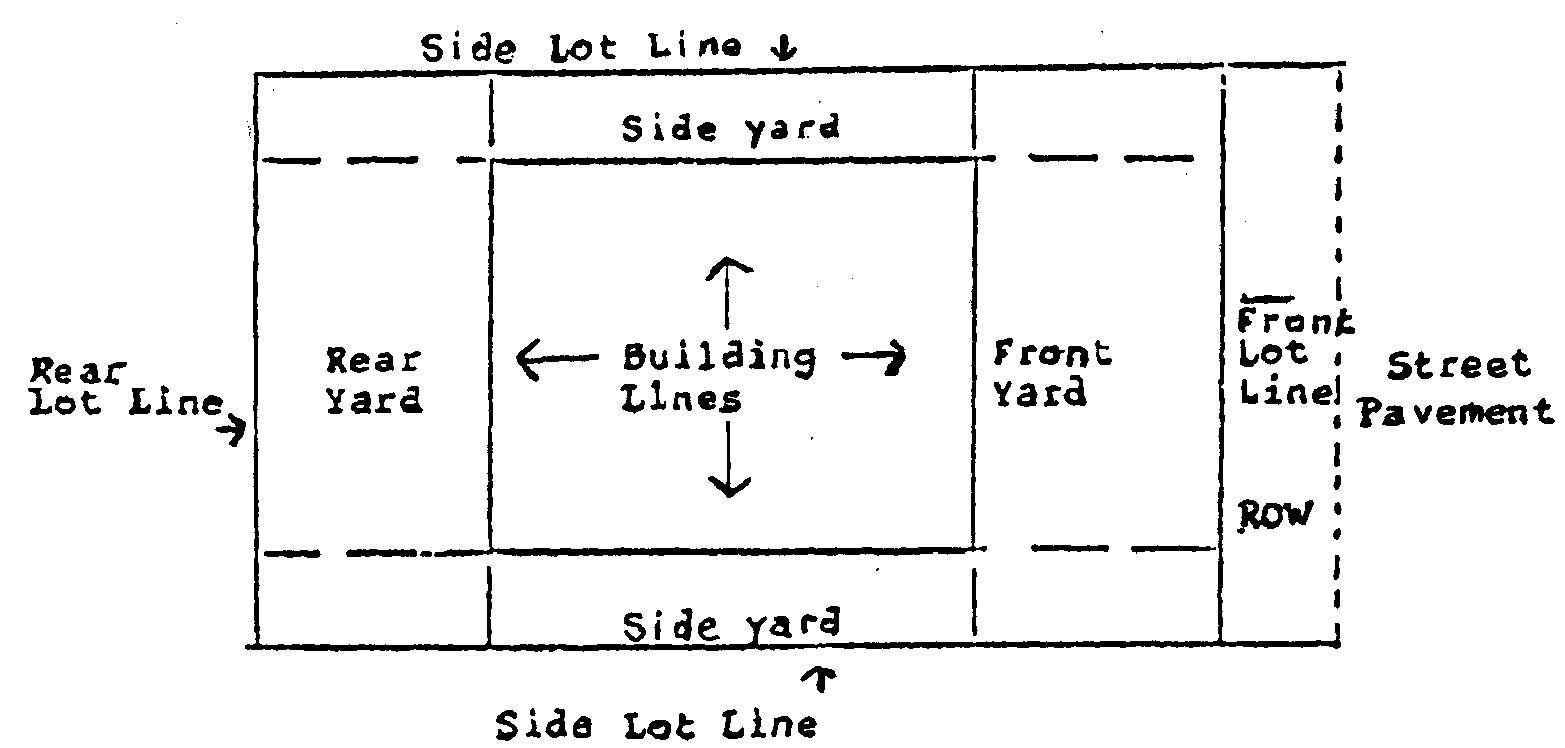 Setback: A distance between the lot line and the building line. (See example 1.)