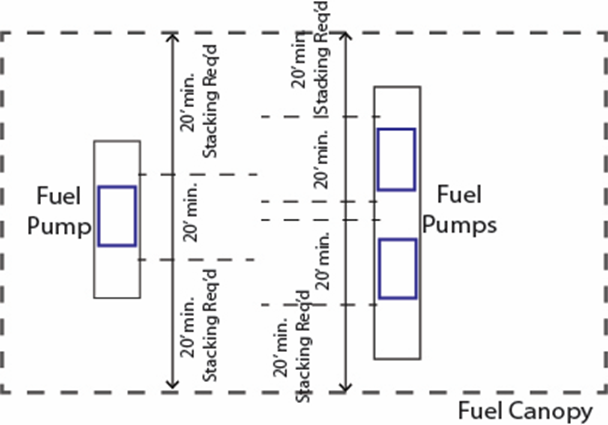 Figure 106.85-2: Figure Illustrating Stacking Required for Gas Stations