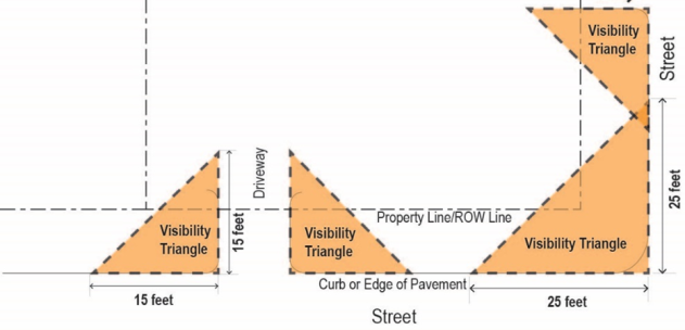 Figure 106.86-1 Visibility Triangles at Driveways and Intersections