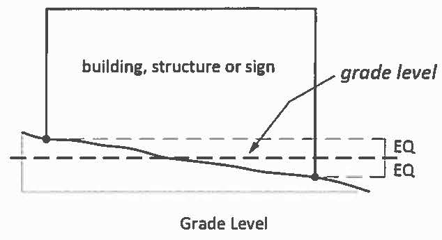 Building height means for flat or parapet roof buildings, the vertical distance measured from grade level at the front of the building to the highest point of the roof. For pitched-roof buildings, the vertical distance measured from grade level at the front of the building to the average of the eaves and ridges.