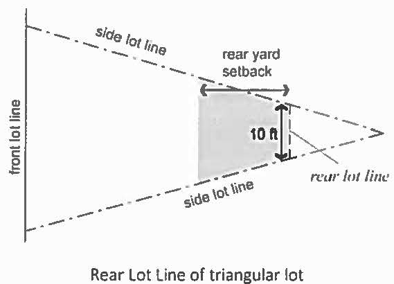 Lot line, rear. That lot line that is generally parallel to and most distant from the front lot line. In the case of a triangular or irregularly shaped lot, a line ten feet in length, entirely within the lot, parallel to and at the maximum distance from the front lot line.