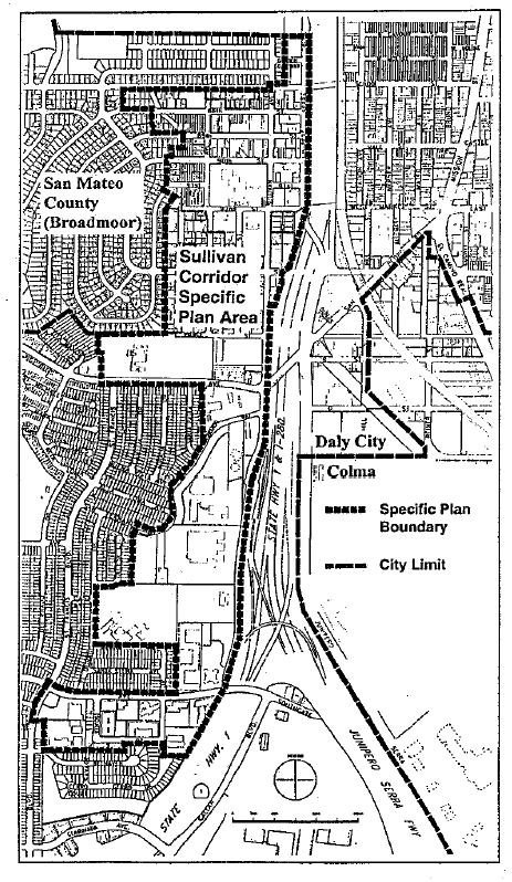 The provisions of this district shall implement the Sullivan corridor specific plan. The regulations and land use designations contained in the Sullivan corridor specific plan shall prevail. The specific plan provides further guidance in complying with the requirements of this chapter. The specific plan shall be used in conjunction with this chapter to design and evaluate development proposals subject to the district requirements. Furthermore, all development shall be in conformance with the Daly City general plan and the Sullivan corridor specific plan.