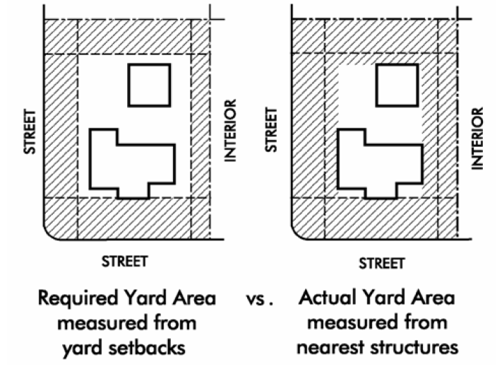 Size of yards and other open spaces;